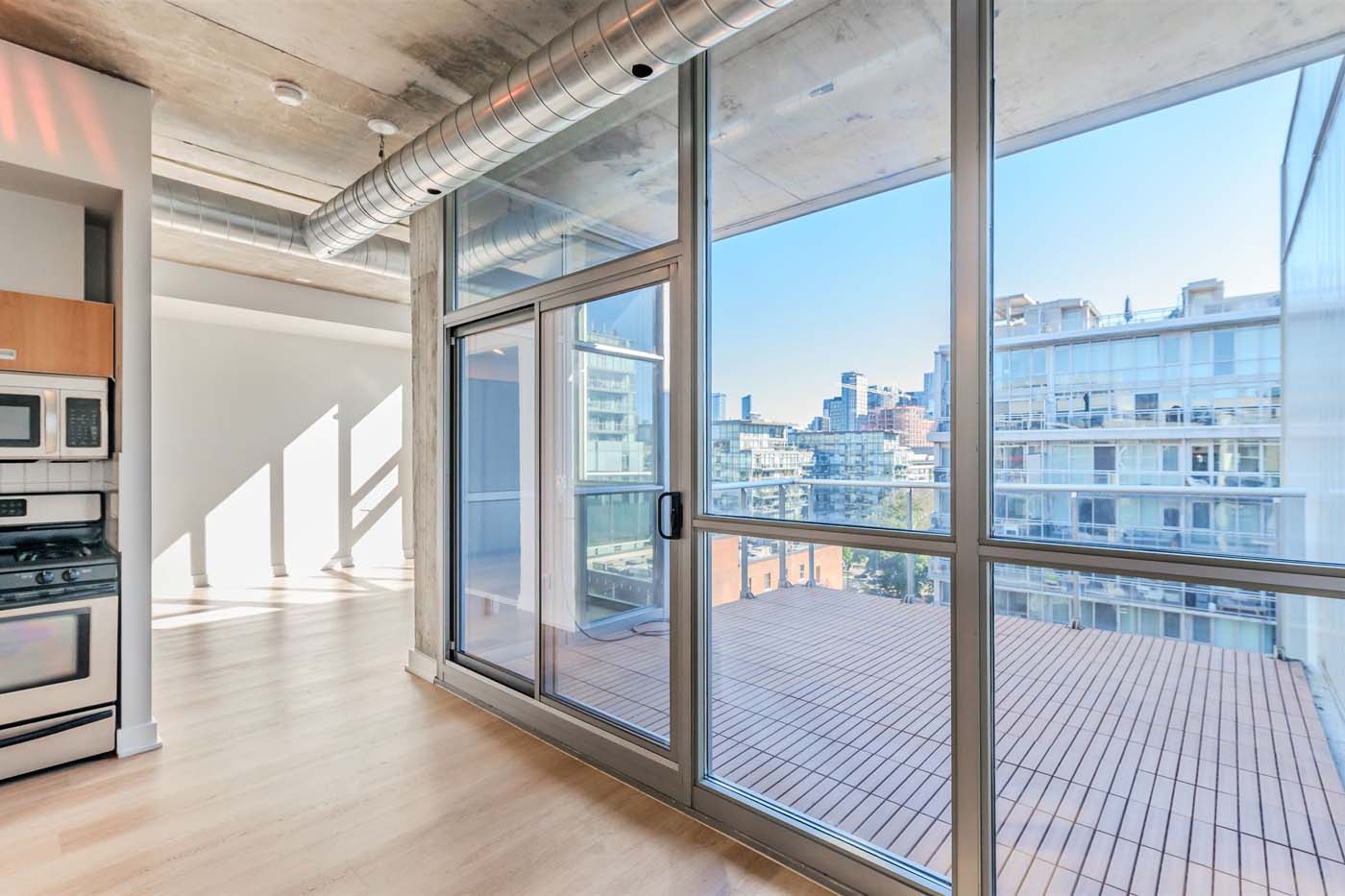 Welcome to your dream loft at 60 Bathurst Street! Soaring 10-foot exposed concrete ceilings, a spacious and functional one bedroom plus den layout, and a private terrace with iconic CN Tower views. Fire up the BBQ (yes, there’s a gas hookup on your oversized 144 square foot terrace) and entertain in style on one of the building’s best outdoor spaces. Inside, the open-concept living and dining area is perfect for both quiet nights in and hosting friends. With stainless steel appliances and stone countertops in the kitchen, upgraded flooring throughout, floor to ceiling windows, and plenty of closet space, this loft checks all of the boxes. The den is large enough to function as a proper home office or guest space, while the primary bedroom offers comfort and style. Complete with a prime parking space (right across from the elevator), one storage locker, and located in a well-managed boutique building in the heart of King West.